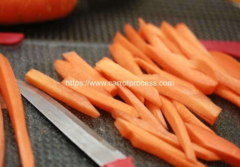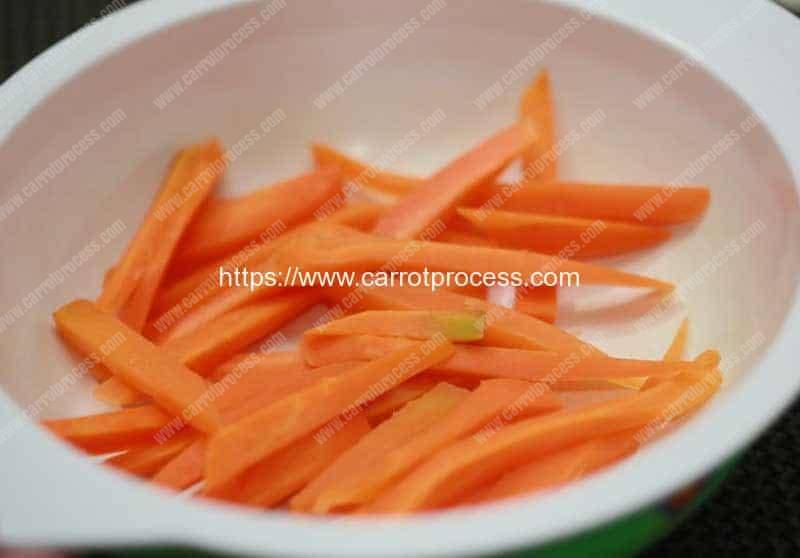1.洗涤并剥离胡萝卜,然后去除茎。将胡萝卜切成圆,将其切成薄片,或将其切成小块大小的块。