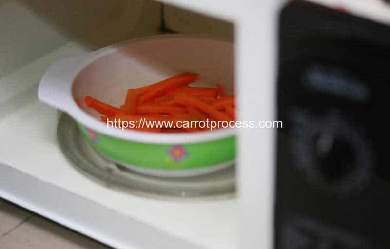 3.微波在高处上的胡萝卜。在微波炉中煮至嫩,这应该花费大约4到6分钟。您可以用叉子检查胡萝卜,以查看是否完成。