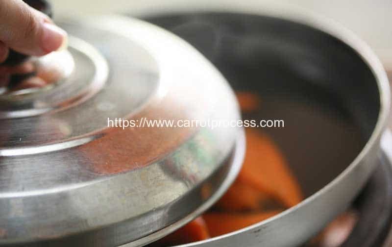 6.将胡萝卜蒸直到嫩。这应该需要5到10分钟,具体取决于块的大小。