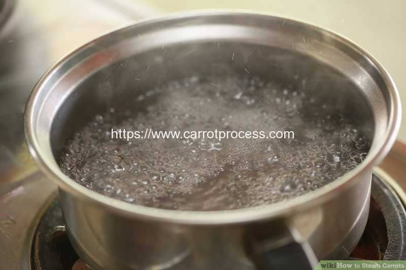 4.将篮子放在沸水上。确保水不会到达蒸笼的底部。如果胡萝卜浸入水中,它们将被煮沸而不是蒸。