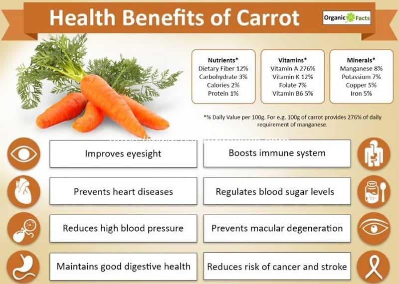 Health benefits of carrots include the following: